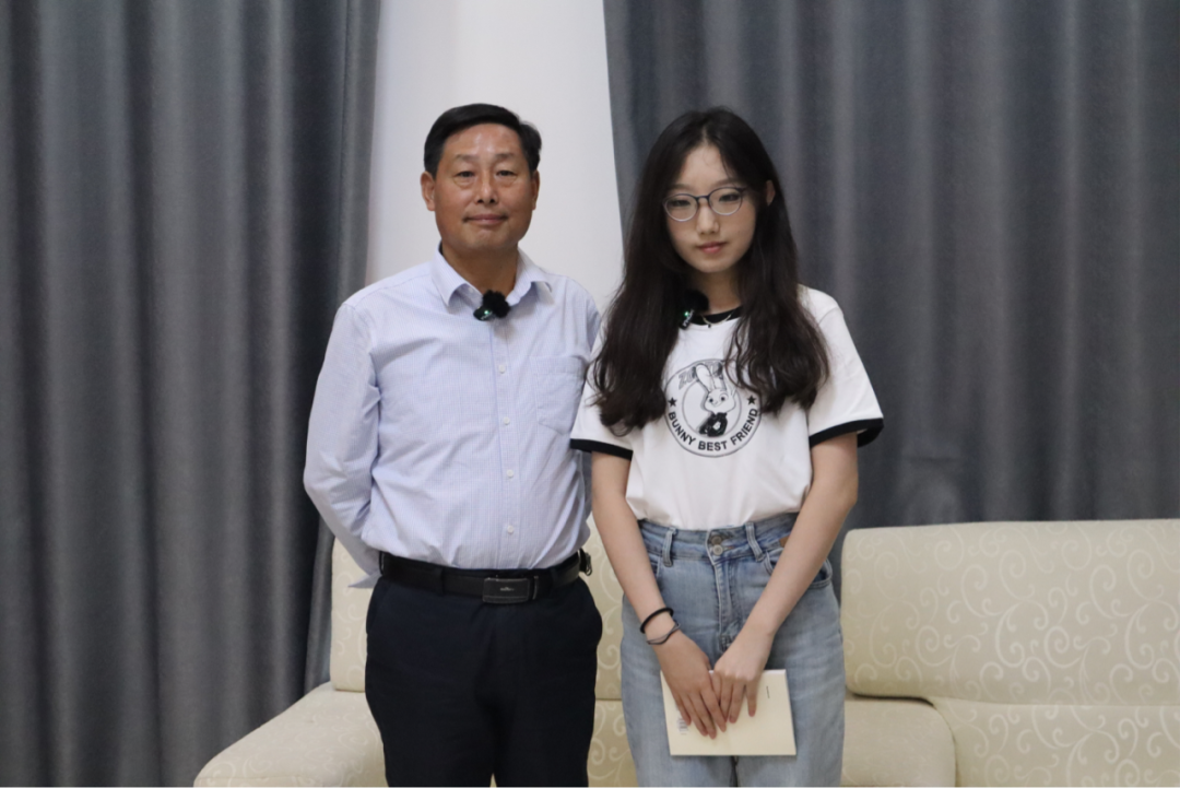 ▲太阳成tyc122cc集团本科生王福琴与上河村村支部书记李大潮采访后合影