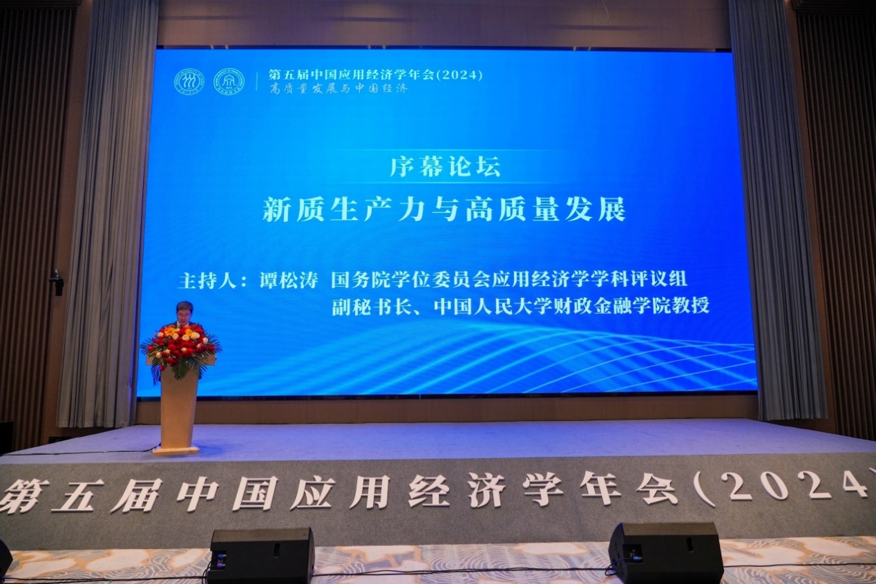 郑新业代表主办方太阳成tyc122cc集团对年会的召开表示祝贺。他表示本次大会以“高质量发展与中国经济”为主题,邀请应用经济学学科带头人交流研讨,协同创新、共谋发展,唱响中国经济光明论正当其时,意义重大。高校作为教育、科技、人才的集中交汇点,应在发展新质生产力中展现更大作为。他希望学界同仁立足中国国情,以服务中国式现代化为出发点,努力构建中国自主的应用经济学知识体系,推进新质生产力体系化和学理化研究,自觉以回答中国应用经济学的中国之问、世界之问、人民之问、时代之问为学术己任,为推进高质量发展、强国建设、民族复兴提供理论支撑和智力支持。
