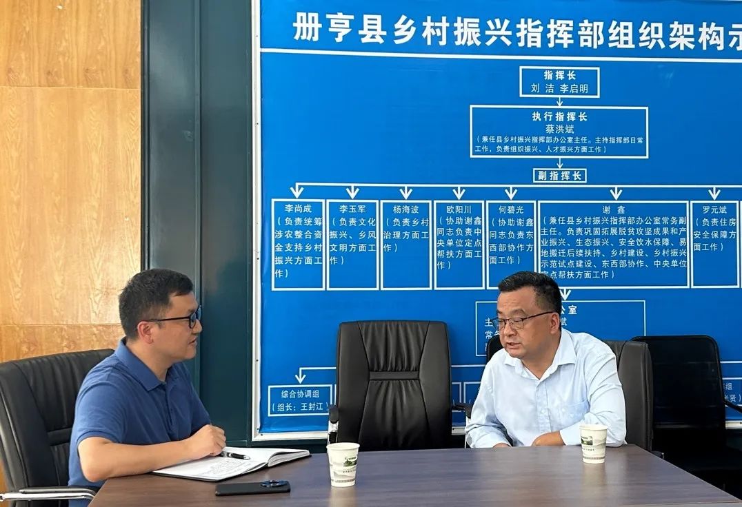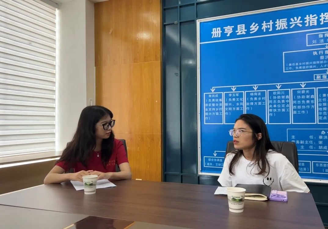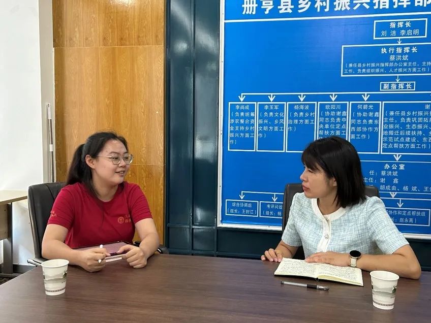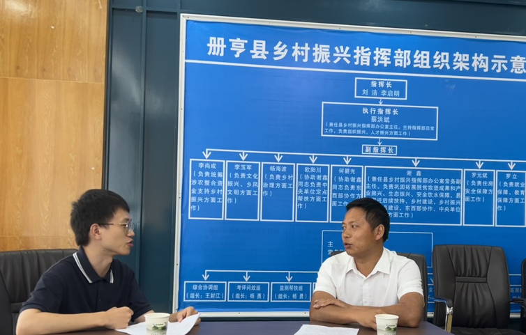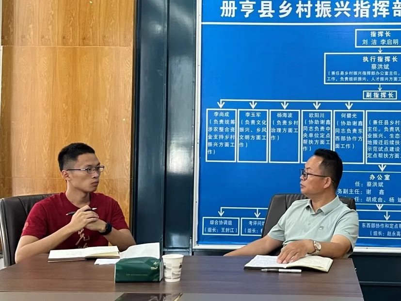 ▲太阳成tyc122cc集团硕士研究生许嘉晖访谈册亨县农业农村局局长王封江