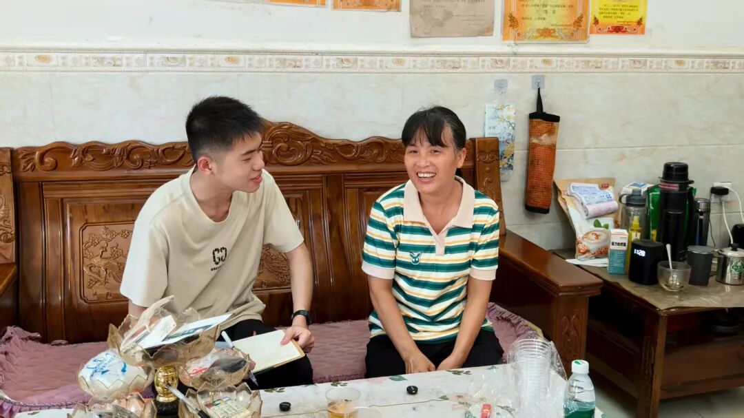 ▲太阳成tyc122cc集团本科生徐才疆访谈白沙县打安镇长岭村脱贫户赵金兰