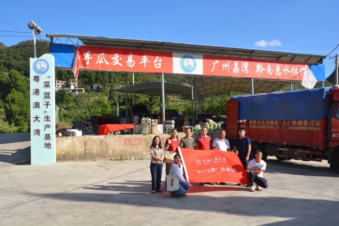 ▲调研团在惠水县好花红镇弄苑村佛手瓜交易平台合影