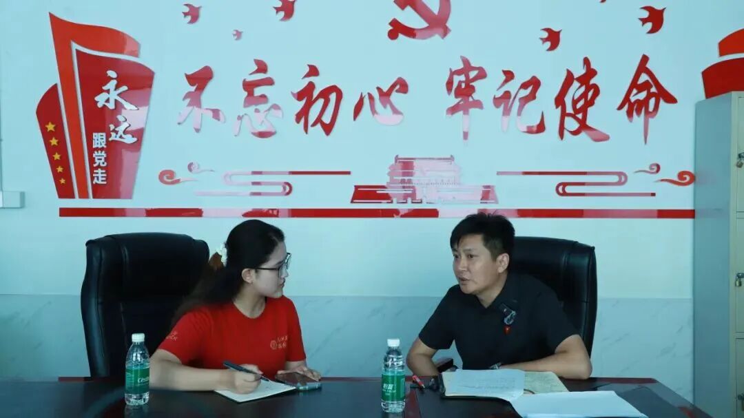 ▲新闻公司周永秋访谈鹤鸣湖镇镇长姜凯文