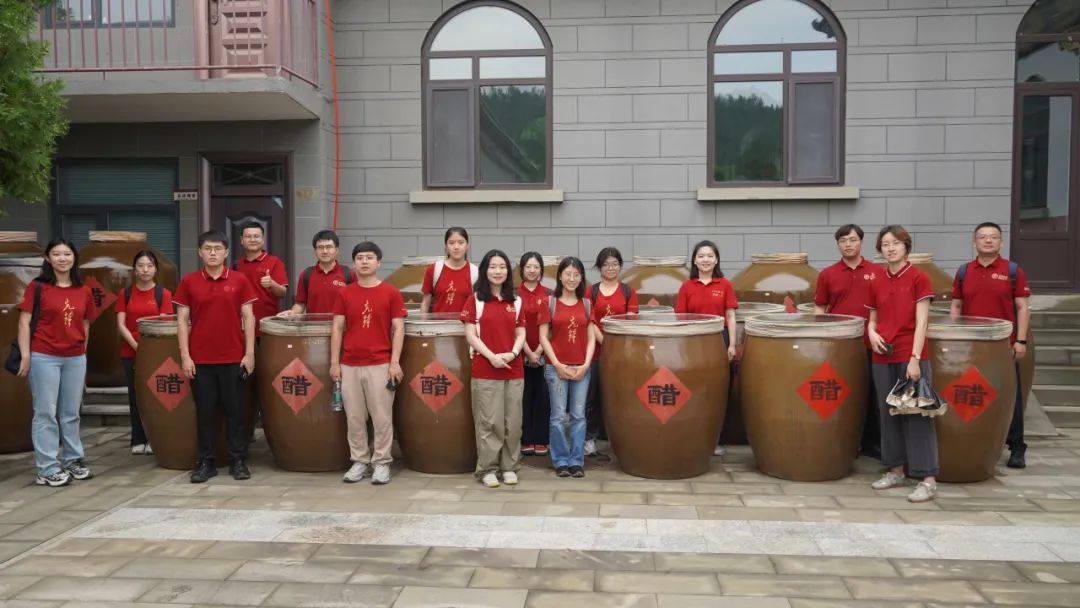 调研团队深入绥德县神泉食品有限责任公司,考察该公司利用本地作物为原料的食醋酿造过程。该公司使用玉米高粱豌豆等本地作物,自然发酵一周,使用净化过滤后的山泉水,暴晒三年制作成醋,使用流水线灌装设备,每日产量500斤,成本低、污染小,具有当地特色。