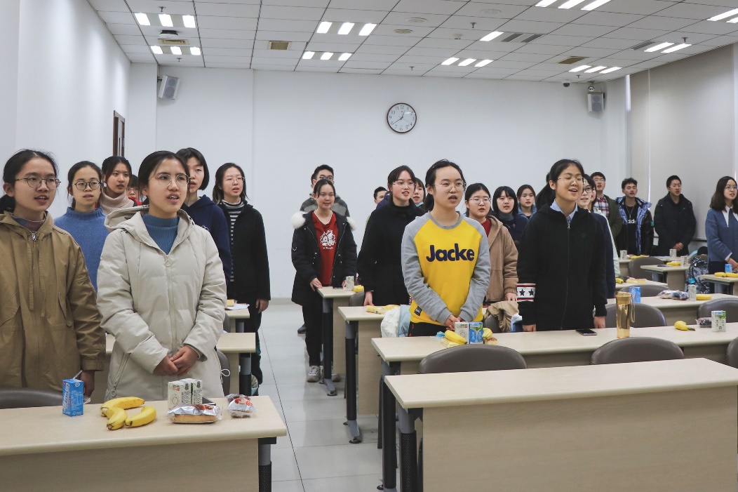 合唱团指挥邹喜同同学首先和大家共同回忆了“一二·九”合唱一个多月的训练历程。成团至今,大家携手共同迈过了许多挑战与艰辛,也收获了满满的友情和成长。
