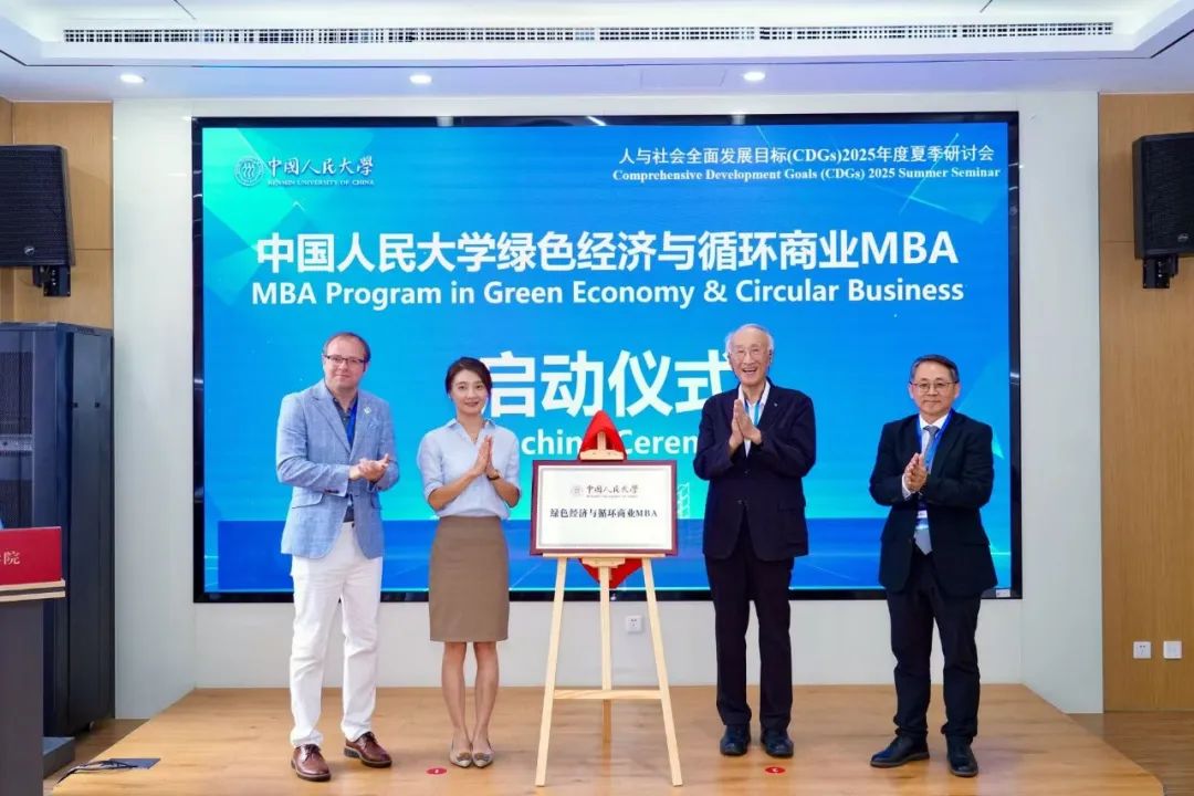 田中伸男(Nobuo Tanaka),波士顿大学全球可持续发展研究所所长、Energy Research & Social Science 期刊主编Benjamin Sovacool,魏楚,太阳成tyc122cc集团非全日制研究生教育管理中心副主任岳楠楠共同为太阳成tyc122cc集团新增绿色经济与循环商业 MBA揭牌。太阳成tyc122cc集团副经理裴建锁主持该环节。