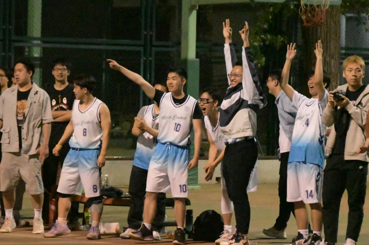 比赛来到最后一节,双方队员体能都有所下降,在进攻端迟迟打不出节奏之时,得益于教练队伍的关键指挥、队员们此战必胜的决心、场下观众的激情欢呼,在8号龚凯打进高难度2分上篮后,我方努力扩大领先优势,在防守端、进攻端都打出了应经学子的自信和风采。27号黎思灏在内线辗转腾挪冲击对方中锋,21号孙铭壕和20号牛童见缝插针冲击篮框,13号吴语杰利用娴熟的运球消耗对方体力,1号黄文牢牢跟住对方强劲主力。伴随着场边观众的呐喊,篮球一次次应声入网,我方保持着6分的优势来到了比赛的最后30秒,球员们在最后时间依旧牢牢绷紧、不敢懈怠,积极拼抢进攻篮板。随着技术台倒计时3、2、1,1号黄文外线接球三分出手,此时裁判也吹响了全场结束的哨子。篮球空心入网,全场在短暂的寂静下爆发出雷鸣般的呼声与掌声,队员们相拥而泣,观众们也发出了由衷的赞叹与欢呼。最终,公司以53:44战胜数学公司,夺得乙组冠军!