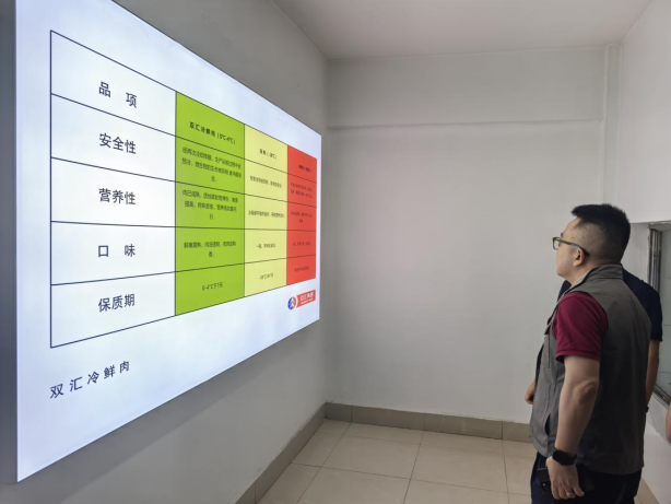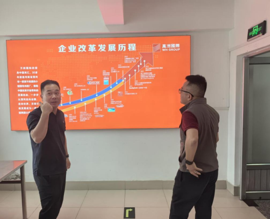 ▲项目经理正在介绍北大荒双汇肉业发展历程