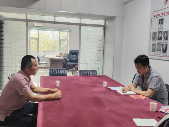 8月18日下午,调研团抵达东郊镇厢兰五村,本科生钟子佟、胡博恺、林正瀚先后与东郊镇镇长武洪臣、驻村工作队队长高双奎、党总支书记张会春展开访谈,了解脱贫村产业增收与乡村环境整治的相关工作。