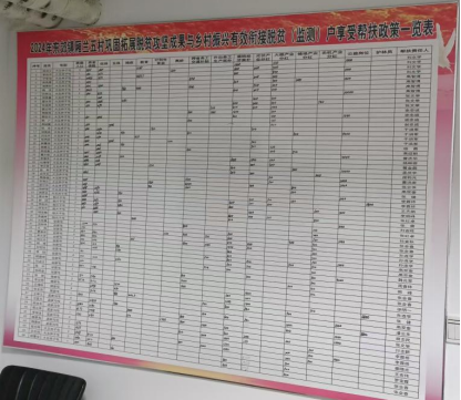 ▲脱贫户享受帮扶政策一览表上详细记录了扶贫补贴的发放情况