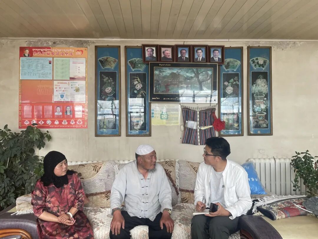 ▲青海民族大学研究生陈英楠访谈刚察县泉吉乡宁夏村原党支部书记才保