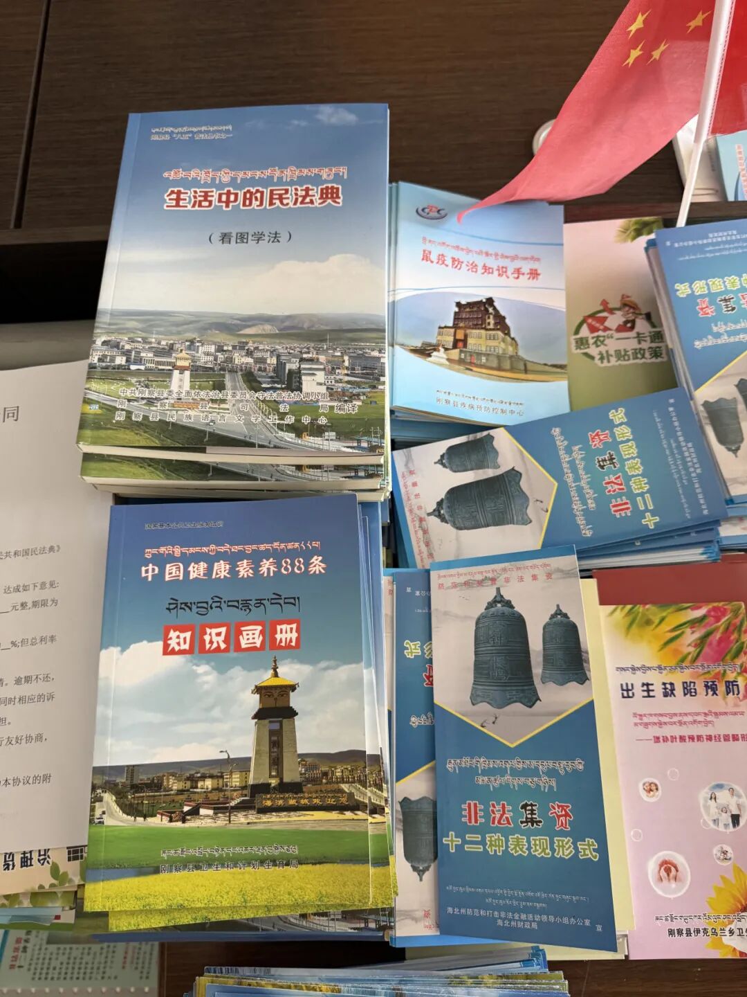 7月17日下午,访谈团到达刚察县伊克乌兰乡刚察贡麻村。在伊克乌兰乡刚察贡麻村,当地村综合服务中心在日常入户工作中自制宣传手册,涵盖慢性病防治、民法典知识、安全自救等内容。干部们结合村民生活实际与群众关切问题灵活开展宣传,有效增强了公共意识和法治观念。