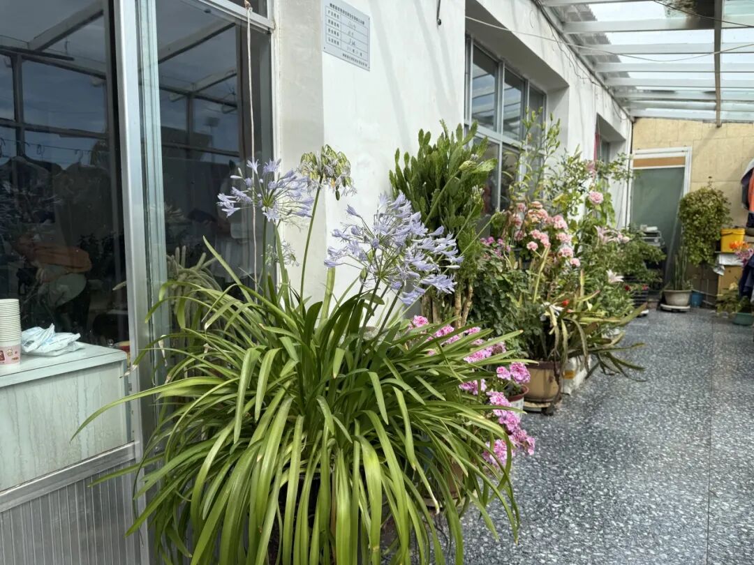 ▲刚察县哈尔盖镇切察村回族脱贫户唐宝强家暖廊中养的花