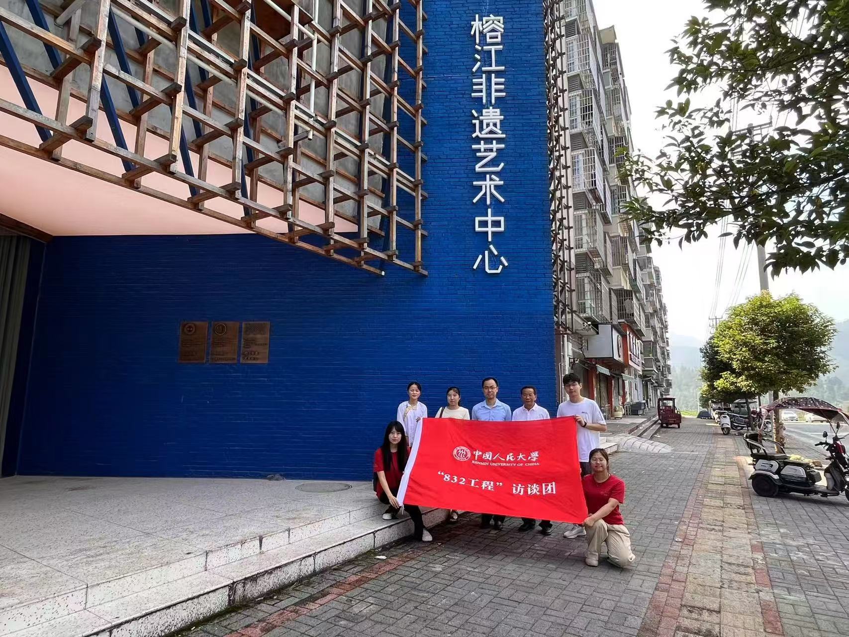 ▲调研团在榕江非遗艺术中心前合影