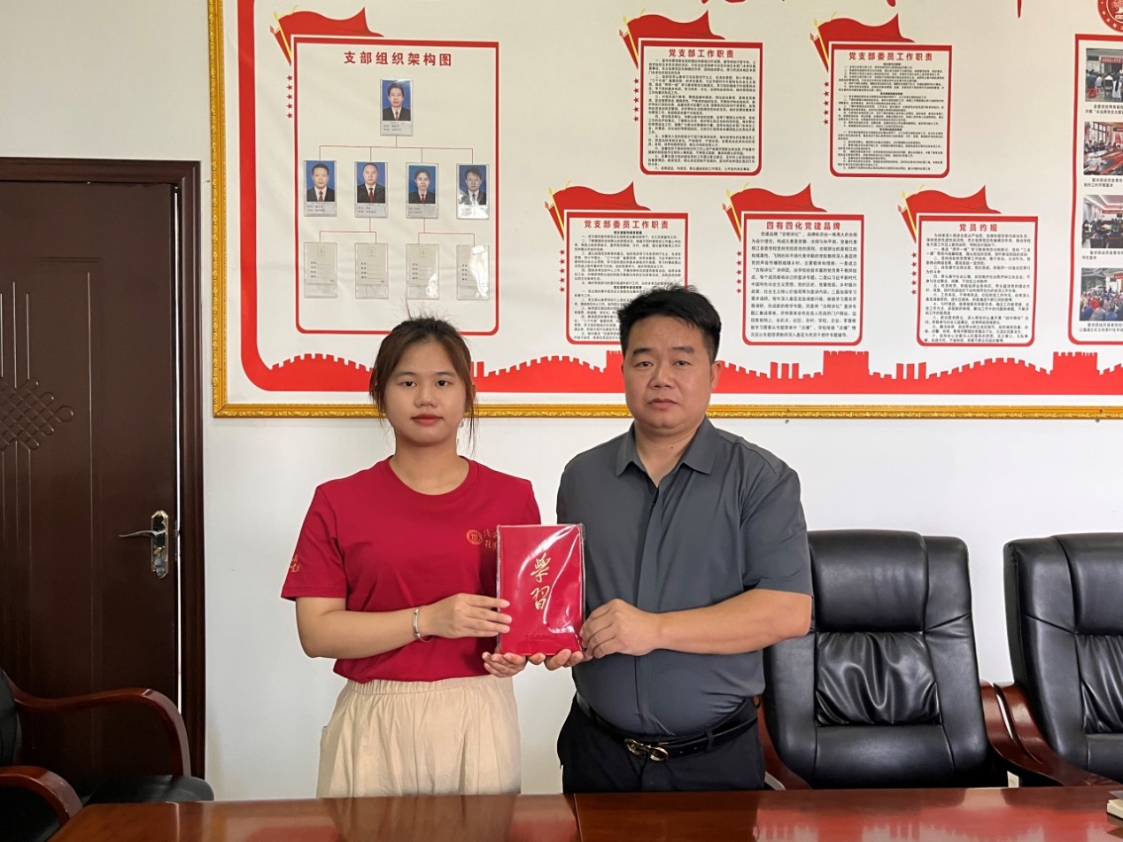 ▲调研团研硕士生任宇静访谈寨蒿镇党委书记黄凯