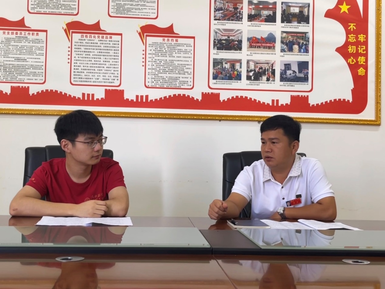 ▲调研团博士生杨曾超访谈榕江县农业农村局局长陈海