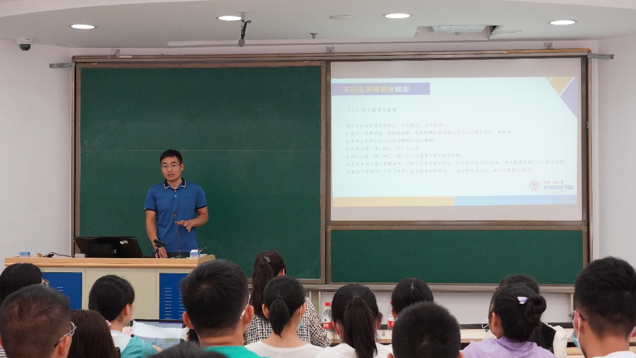 陈占明深入剖析了培养方案,详细介绍了国民经济管理、能源经济两个专业和“应用经济-数据科学”、“应用经济-农村区域发展管理”两个双学士学位项目,分享了公司拔尖人才培养经验。明确学业是大学的根本要务,希望同学们可以从“一流中员工”成长为“一流本科生”。