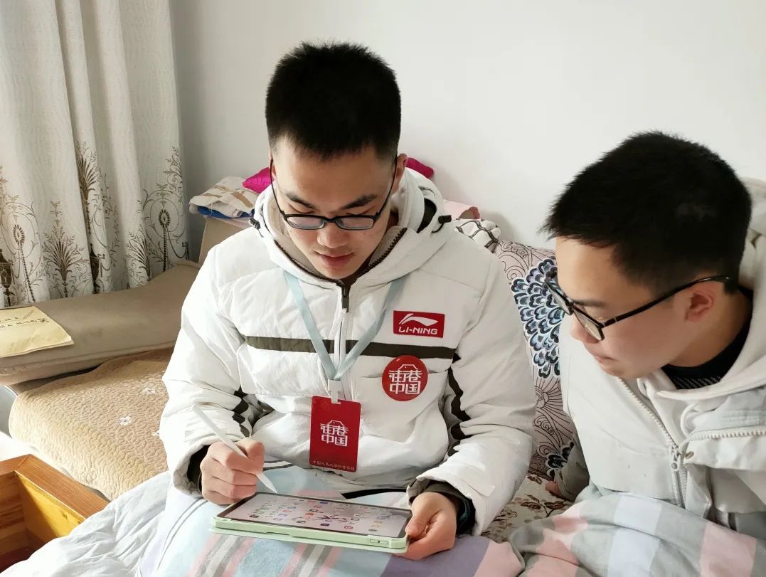 ▲哥哥冉卓超(右)接弟弟冉卓群(左)来校报到