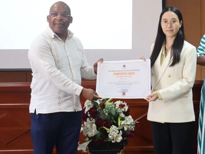 塞梅多大学内利托·安东尼奥汇报“合并账目在公司中的相关性”,卢塔迪纳·保罗汇报“安哥拉公司筹备和继承”。报告聚焦安哥拉企业发展现实问题,展现了当地学子对本国经济发展的深入思考,帮助中国员工清晰认知安哥拉企业运营现状。