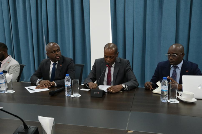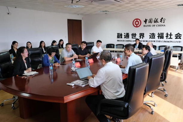 代表团走进中国银行罗安达分行开展交流。中国银行罗安达分行的前身是成立于2012年的罗安达代表处,2017年正式升级为分行,成为安哥拉首家以分行形式设立的外资银行,也是当地市场最早入驻的亚洲背景金融机构。