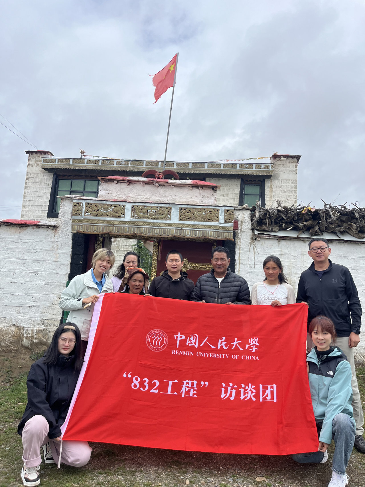 ▲2024年7月,“832工程”访谈团在拉萨市当雄县曲卡镇当曲卡居委会前合影