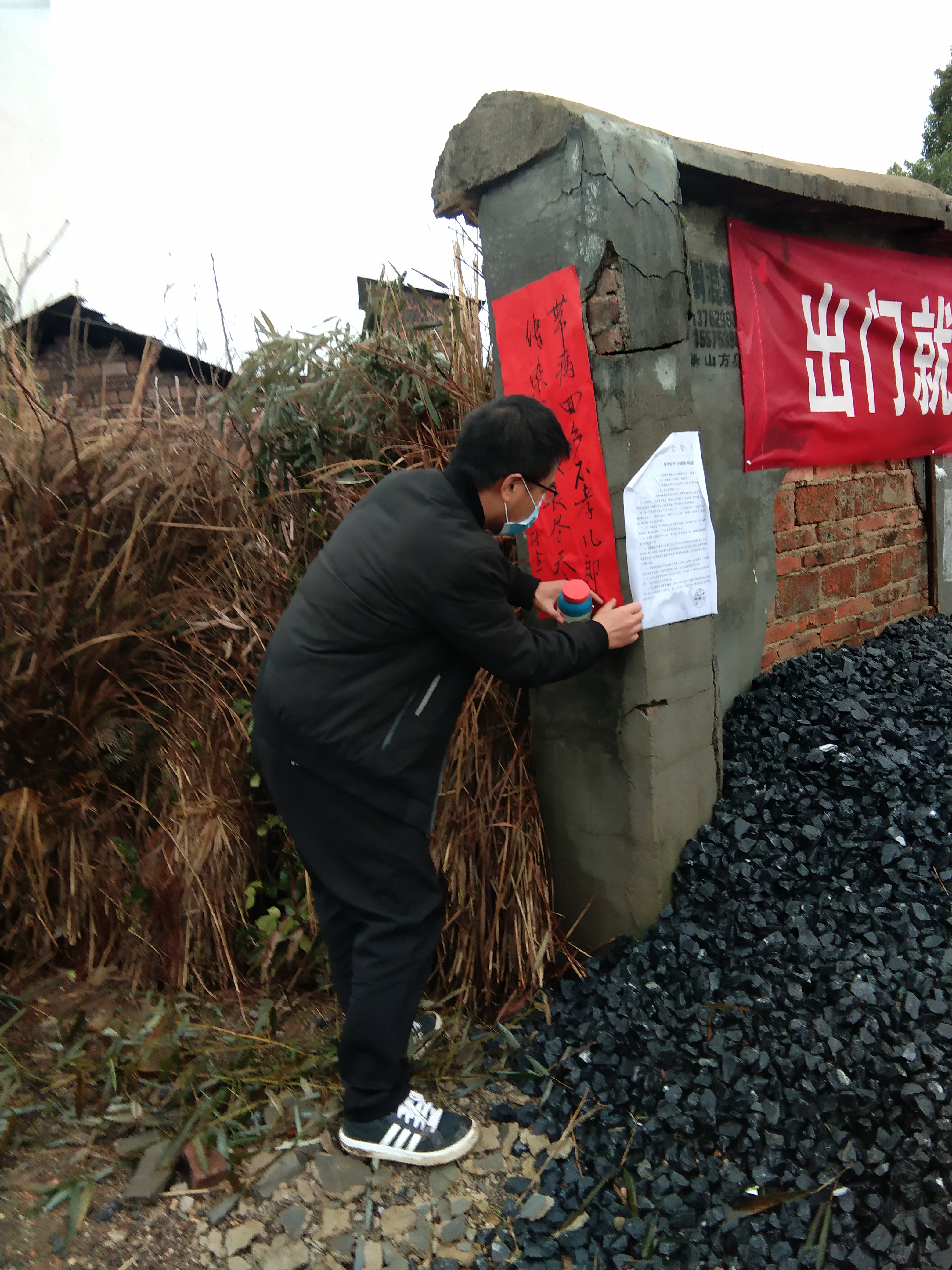 针对村里防控意识薄弱的这个问题,首先采取的措施就是在整个村子全覆盖式张贴宣传标语。我用手机在网上收集了很多的宣传标语,如“今天到处串门,明天肺炎上门”、“老实在家防感染,丈人来了也得撵”等,这些这些宣传标语通俗易懂,风趣幽默,读起来朗朗上口,可以达到直抵人心的传播效果。这些宣传标语由驻村干部用毛笔在红纸上书写,我在全体村干部的带领下张贴。