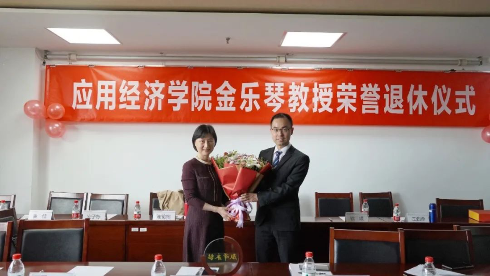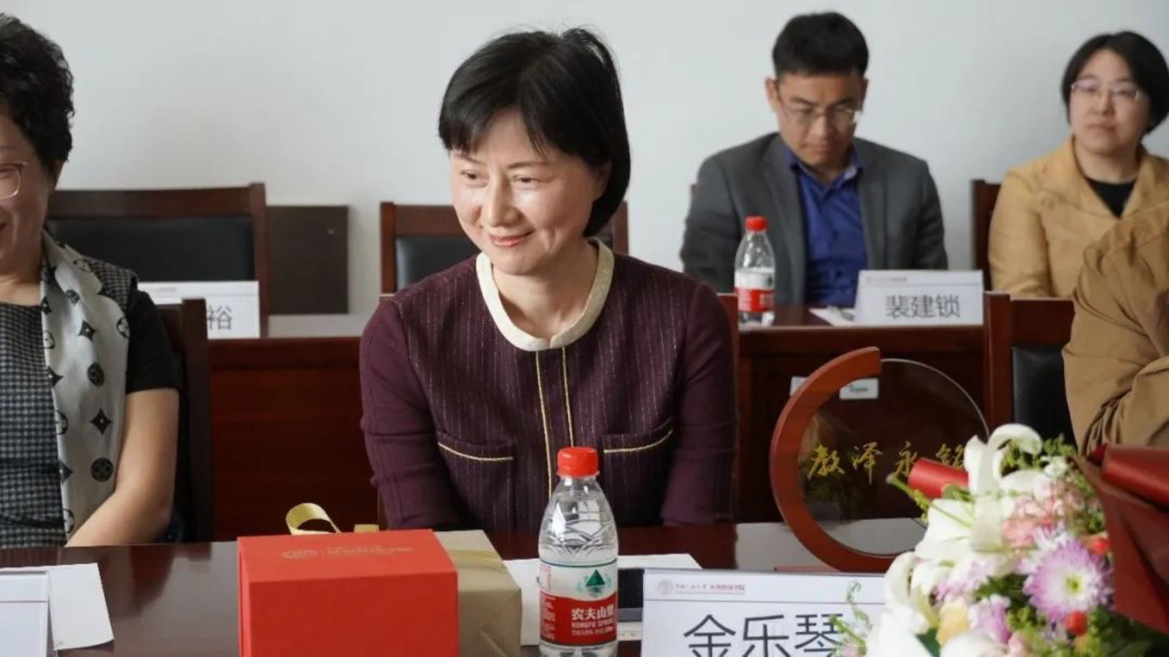 首先,宋东霞介绍了金乐琴在人民大学的学习和工作经历。郑新业代表公司向金乐琴表达钦佩、感谢和祝福之情。郑新业表示,金老师是一名优秀的人民教师,认真对待系所和专业的工作,在制定培养方案时充分考虑员工的发展,重视员工的身心健康和品德觉悟,努力将员工培养成有竞争力的人才,并多次担任班主任,培养大批优秀毕业生;同时,金老师也是一位优秀的科研工作者,是低碳经济领域的先驱,曾创下单篇论文引用超千余的佳绩;金老师还是一位好同事,尽职尽责做好行政和团队建设工作,和同事共同搭档为系所发展做出卓越的贡献。郑新业祝贺金乐琴荣誉退休,希望金老师退休后继续关注公司发展,倡议青年老师向金老师学习,为公司发展、员工成才多做贡献。