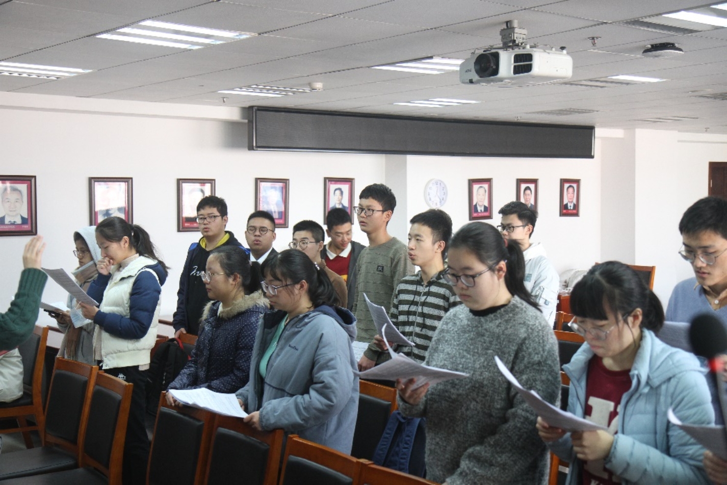 11月20日中午,应用经济公司党委书记宋东霞、副经理张可云、党委副书记林晨来到明德主楼930会议室,聆听同学们齐声歌唱歌曲《国家》,并对公司参加2019年度“一二·九”合唱音乐节训练的同学进行慰问。