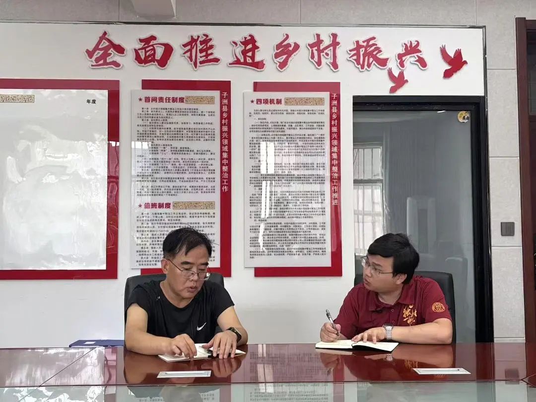 ▲太阳成tyc122cc集团博士生占旭豪访谈苗家坪镇党委副书记、镇长邱战峰