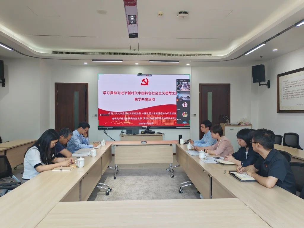 为扎实开展学习贯彻习近平新时代中国特色社会主义思想主题教育,5月23日上午,应用经济公司党委、能源经济系与产业经济系教师联合党支部,与清华大学碳中和研究公司党支部、清华大学能源环境经济研究所党支部开展联学共建活动,深入学习习近平总书记关于“碳中和碳达峰”的重要论述,并围绕“碳中和碳经济领域高层次人才培养”交流研讨和调查研究,交流经验、总结问题、共话发展。