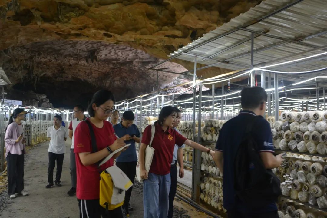 8月29日下午,调研团来到平塘县大塘镇洋方村的食用菌种植基地调研。为了巩固脱贫攻坚发展成果,在广州市白云区发改局的定点帮扶下,洋方村依托自身独特的溶洞地貌,在溶洞种植食用菌。根据实验结论,溶洞内生长的菌子品质更优秀,这是他们在市场上竞争的核心优势。负责人向调研团介绍,当山洞全部投入生产后,大约可以容纳十万个菌包,日产量可有两三万吨。为了更好地将竞争优势转化为附加价值,村集体合作社实施品牌化差异化的竞争策略,计划打造并打响专属的商标——“佯方洞菇”,并且该商标已获得工商管理部门的批准。负责人还介绍,生产所雇佣的劳动力基本上来自本村或者周围的村子,帮助村民就近就业,实现离家近,挣得多的目标。下一步,村集体合作社计划同高端农产品生产线和高端零售超市合作,带领村民获得更多收入,带领村子奔向更美好的未来。