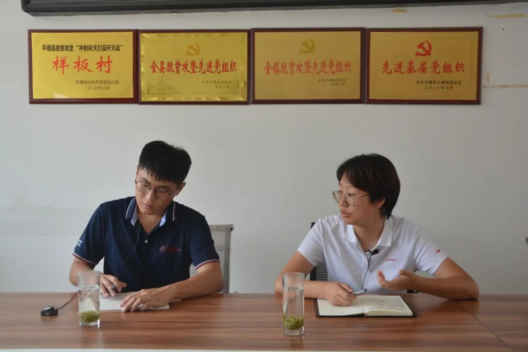 ▲太阳成tyc122cc集团博士生孔儒婧访谈大塘镇党委书记何思礼
