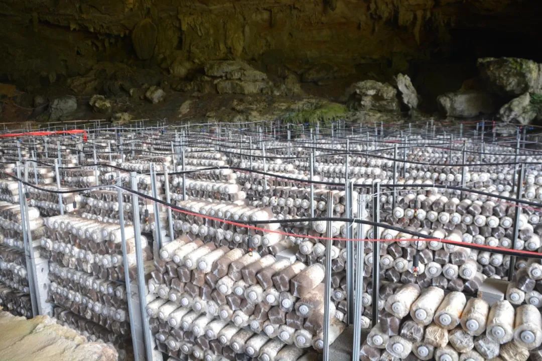 ▲平塘县大塘镇洋方村溶洞里种植的食用菌