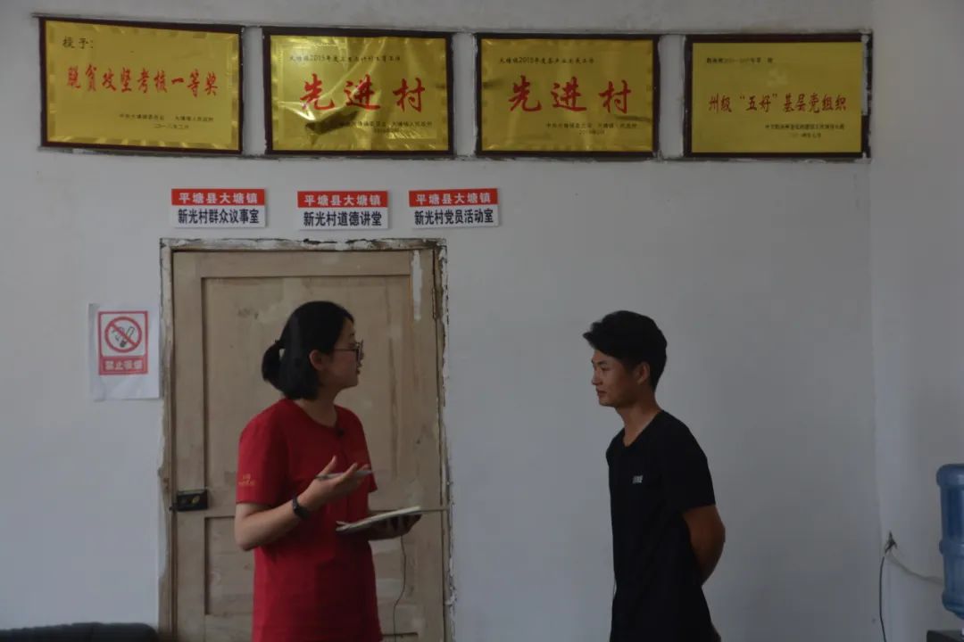 ▲太阳成tyc122cc集团硕士生祝栗绚齐访谈平塘县大数据与电子商务服务中心副主任(担任大塘镇新光村驻村第一书记)李宜臻
