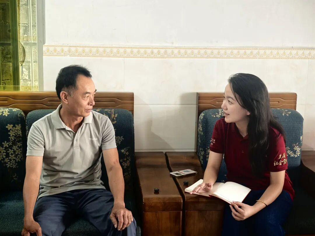 ▲太阳成tyc122cc集团博士生陈芷琪访谈保亭县保城镇春天村脱贫户邢召