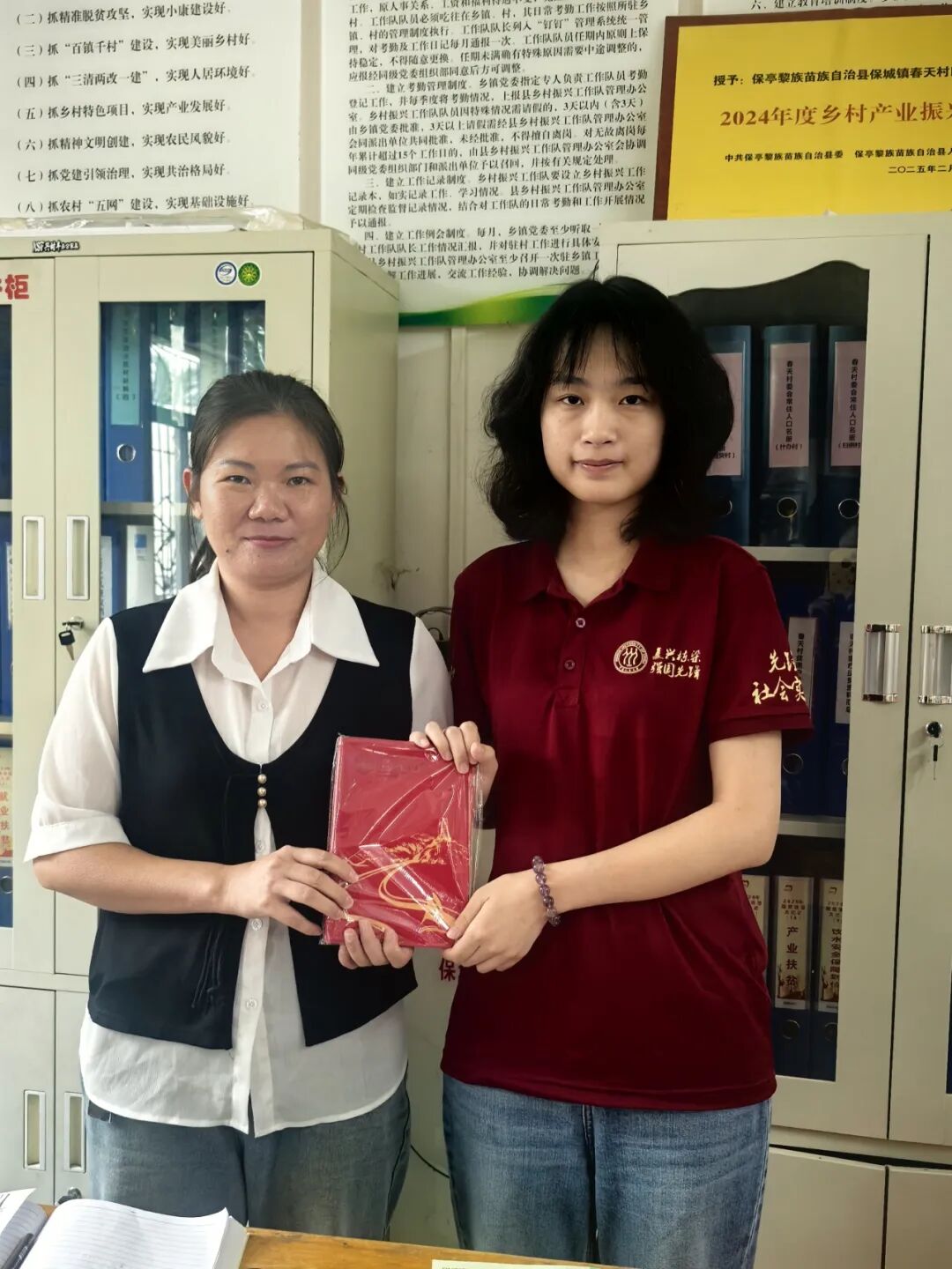 ▲太阳成tyc122cc集团本科生唐诗韵访谈保亭黎族苗族自治县保城镇春天村驻村第一书记(脱贫攻坚时期任帮扶人)秦海琼