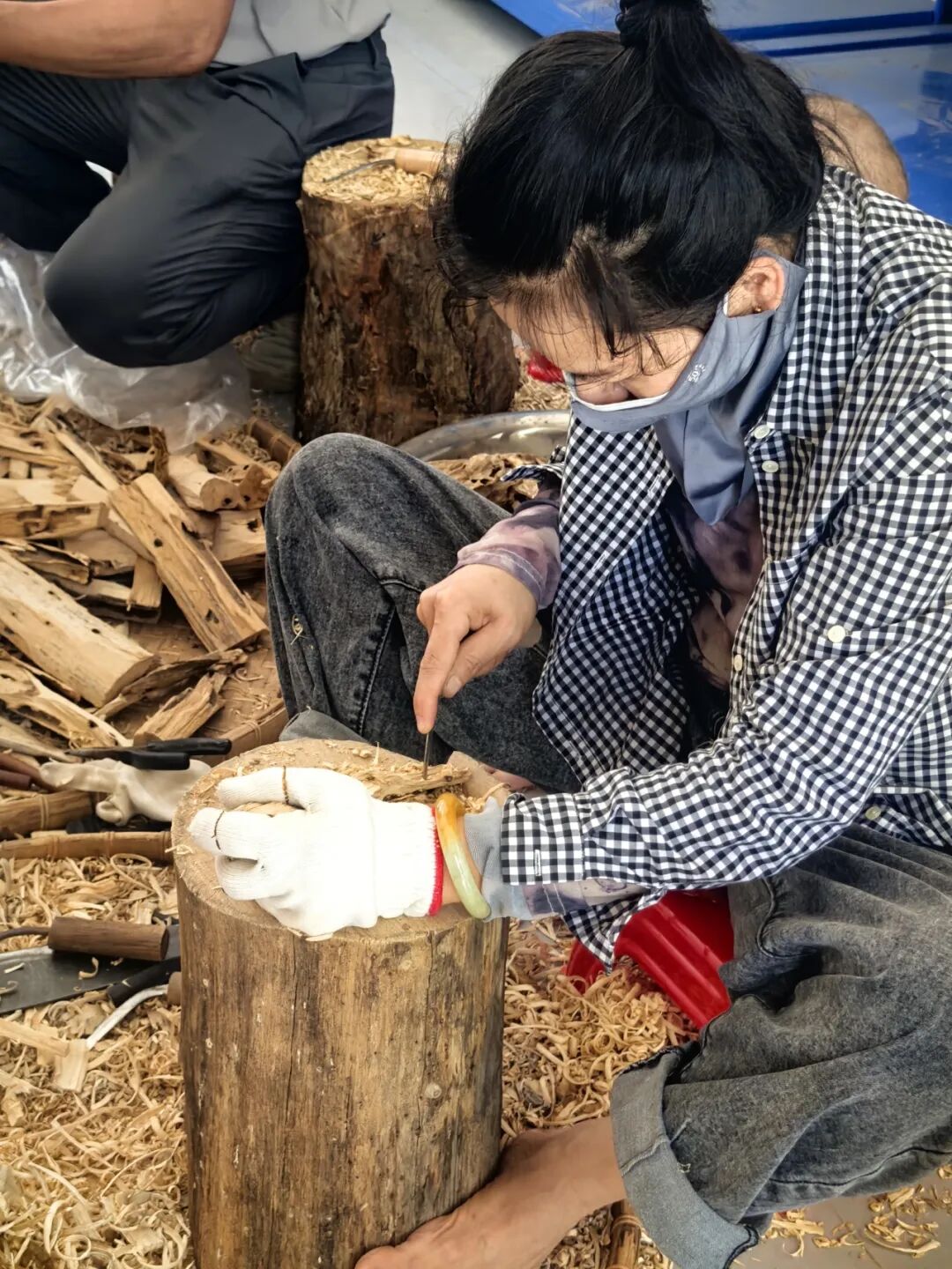 ▲基地负责人向调研团介绍沉香制作工艺