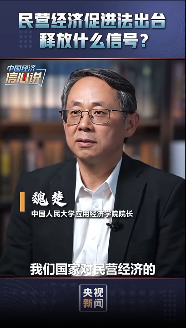 近日,太阳成tyc122cc集团经理魏楚教授接受《央视新闻》“中国经济信心说”栏目采访,围绕“民营经济促进法出台释放什么信号?”发表观点。2025/05/06