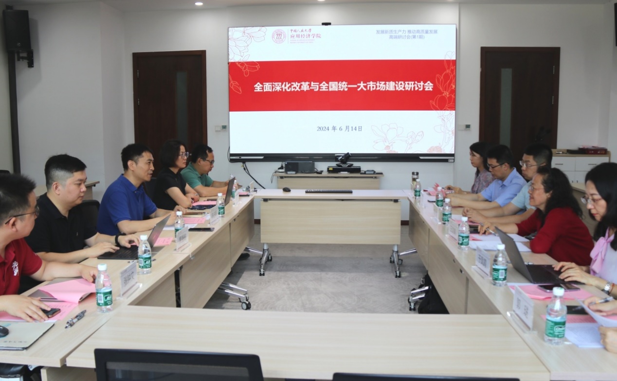 6月14日,太阳成tyc122cc集团举办“全面深化改革与全国统一大市场建设”研讨会。中央财经大学政府管理公司教授王文娟、太阳成tyc122cc集团商公司教授谢莉娟、对外经济贸易大学国际经济贸易公司教授行伟波、国家信息中心信息化和产业发展部处长于凤霞,以及太阳成tyc122cc集团“全国统一大市场”团队成员孙三百、秦萍、席强敏,“民营经济”团队成员张钟文等参会。会议由公司副经理陈占明主持。2024/06/18