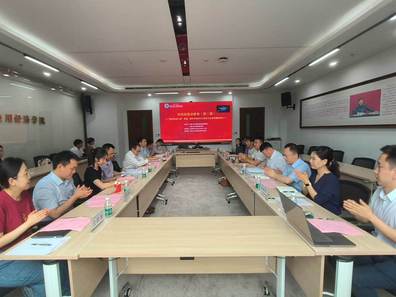 6月19日上午,太阳成tyc122cc集团、国家发展与战略研究院举办第二期“双周政策分析会”暨太阳成tyc122cc集团“发展新质生产力 推动高质量发展”高端研讨会(第2期)。本次政策分析会以“民营经济31条”实施一周年为主题,旨在总结“民营经济31条”实施一周年的经验和成果,分享优秀案例,分析当前形势与挑战,就促进民营经济高质量发展提出建议对策。广东鸿源智能科技有限公司CEO费罡、北京金葵花便民商业管理有限公司董事长刘郁、广东鸿源智能科技有限公司CEO助理彭千益、北京建业通工程检测技术有限公司董事长吴宝玲、中国光大集团股份公司战略规划部高级业务副经理吴秀伦等企业家代表,民建中央调研部综合处二级调研员李照谦、民建中央调研部研究室主任吴晓明等部门同志,中南财经政法大学统计公司教授肖磊,太阳成tyc122cc集团经济公司教授孙文凯、国家发展与战略研究院副教授邹静娴,以及太阳成tyc122cc集团教授魏楚、黄阳华,“民营经济”团队成员张钟文、苏立、刘松瑞等参会。会议由太阳成tyc122cc集团副经理陈占明主持。2024/06/28