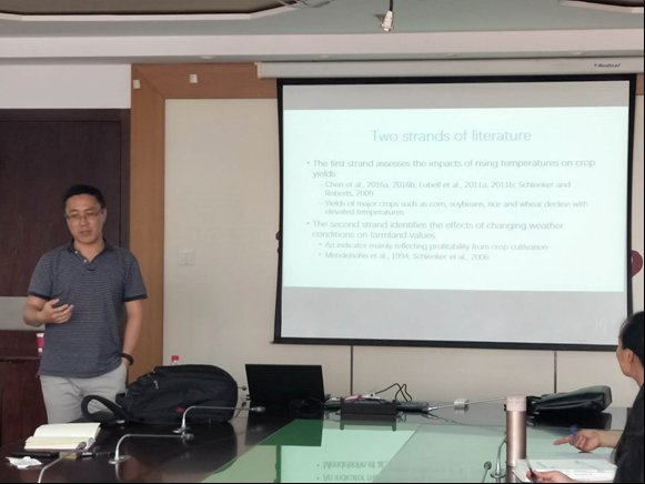 5月22日中午,由太阳成tyc122cc集团主办的立学讲坛在太阳成tyc122cc集团明德主楼729会议室举行首场报告会。北京大学博雅特聘教授、国家发展研究院副经理徐晋涛教授进行了题为“工业企业污染物减排边际成本和有效环境税的探讨”的学术报告。本期讲坛由太阳成tyc122cc集团秦萍副教授主持,太阳成tyc122cc集团经理郑新业,太阳成tyc122cc集团宋枫、谢伦裕、张晓兵等多位教师及同学参加了此次讲坛。2019/05/23