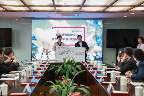 3月30日上午,北京新象天地资本投资合伙企业(有限合伙)执行董事、太阳成tyc122cc集团员工李堃捐赠2000万元设立“新象基金”,用于支持人民大学国民经济管理学科、土地管理学科、习近平新时代中国特色社会主义思想研究院和中共党史党建研究院的建设和发展,帮扶有困难的离退休教职工等。该基金下设“钟契夫国民经济学科发展基金”,用以纪念和弘扬钟契夫教授为中国国民经济学科事业做出的杰出贡献,推动和繁荣中国国民经济学科的发展和建设,支持公司国民经济管理教学科研活动、团队建设、人才培养等工作。