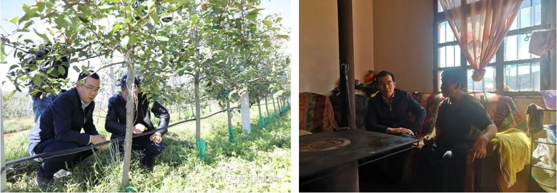 在苹果基地调研滴灌技术,走访建档立卡贫困农户