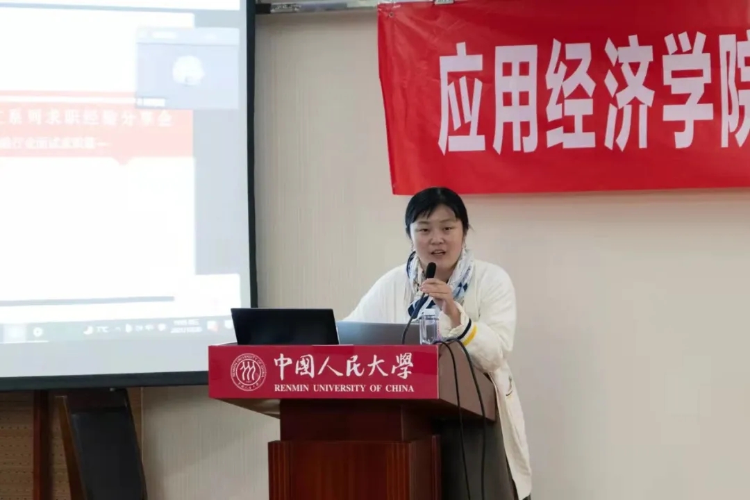 新一轮秋招季来临,为提升应经学子求职竞争力,提高简历质量、掌握面试技巧,收获理想offer,应经团委研究生会2021年10月22日举办了面试求职经验分享会。本次经验分享会有幸邀请到了2006届国民经济管理员工陈鉴姝为大家分享面试技巧与经验。此次分享会采取线下结合线上的方式,吸引了院内外同学的广泛参与,参会人数共有80余人。