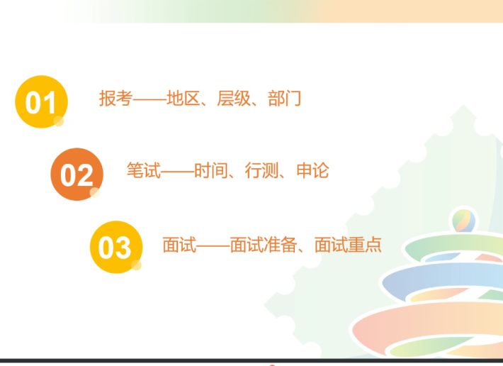 杨海姚员工主要围绕公务员考试的岗位选择、笔面试准备等内容进行了分享。岗位选择方面,她建议同学们基于自身发展目标,综合考虑薪资待遇、工作强度、晋升空间等因素选择目标岗位。笔试准备方面,她叮嘱同学们要早做准备,并且要制定分阶段的复习计划。其中,行测科目在前期可以阅读一本通等教材了解题型,中期分题型练习,后期练习历年真题;申论科目则可以重点关注人民日报、学习强国等app来积累写作素材。面试准备方面,杨海姚员工建议同学们要在做好面试部门知识储备的基础上,注重逻辑训练,在答题过程中要切题并答出关键词。